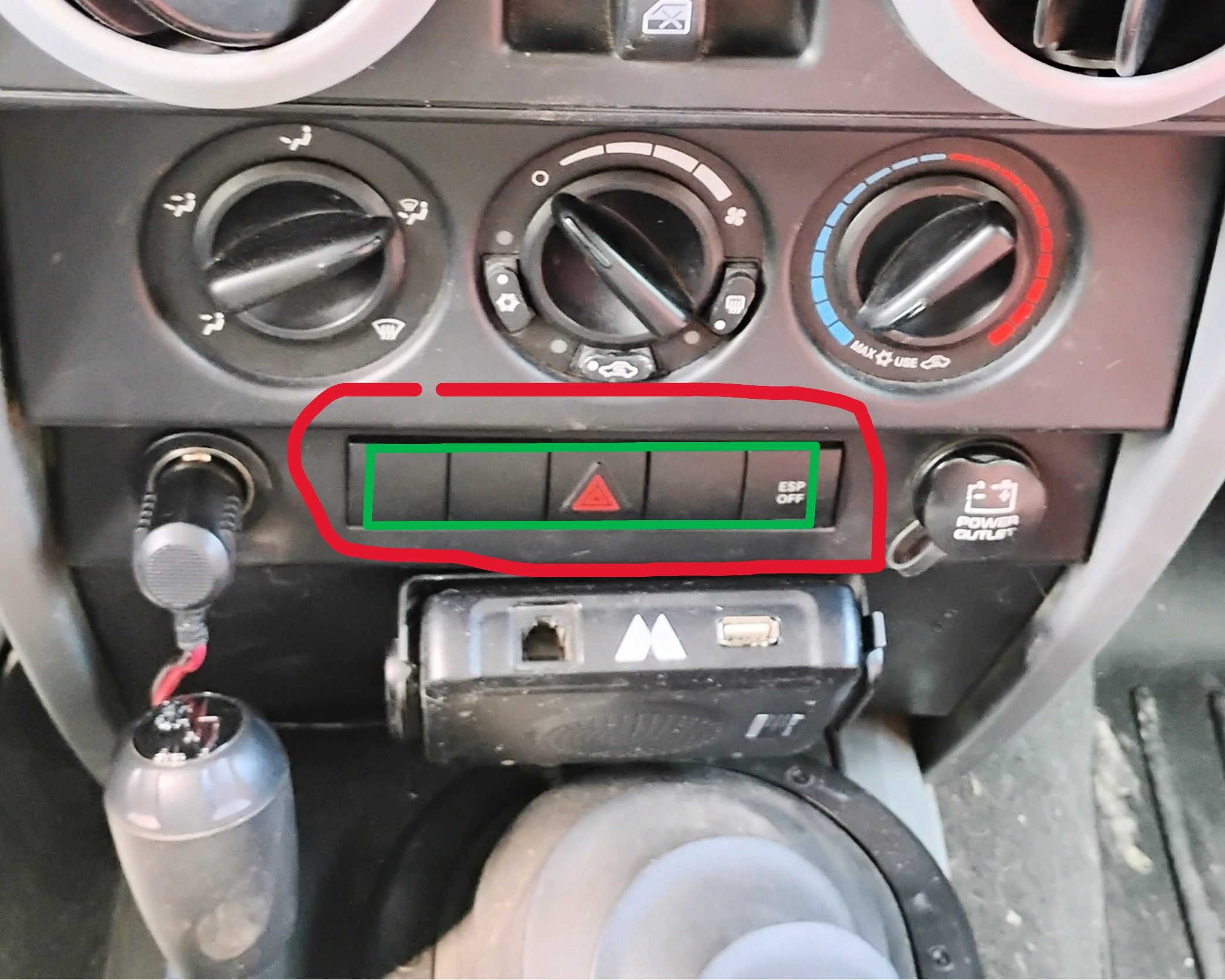 You could always move your Midland over to the passenger side of the center and mount the switch where your Midland was?