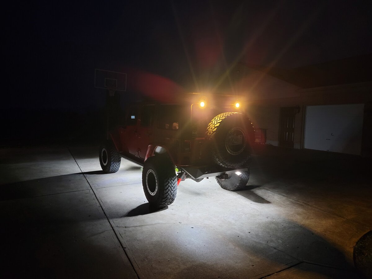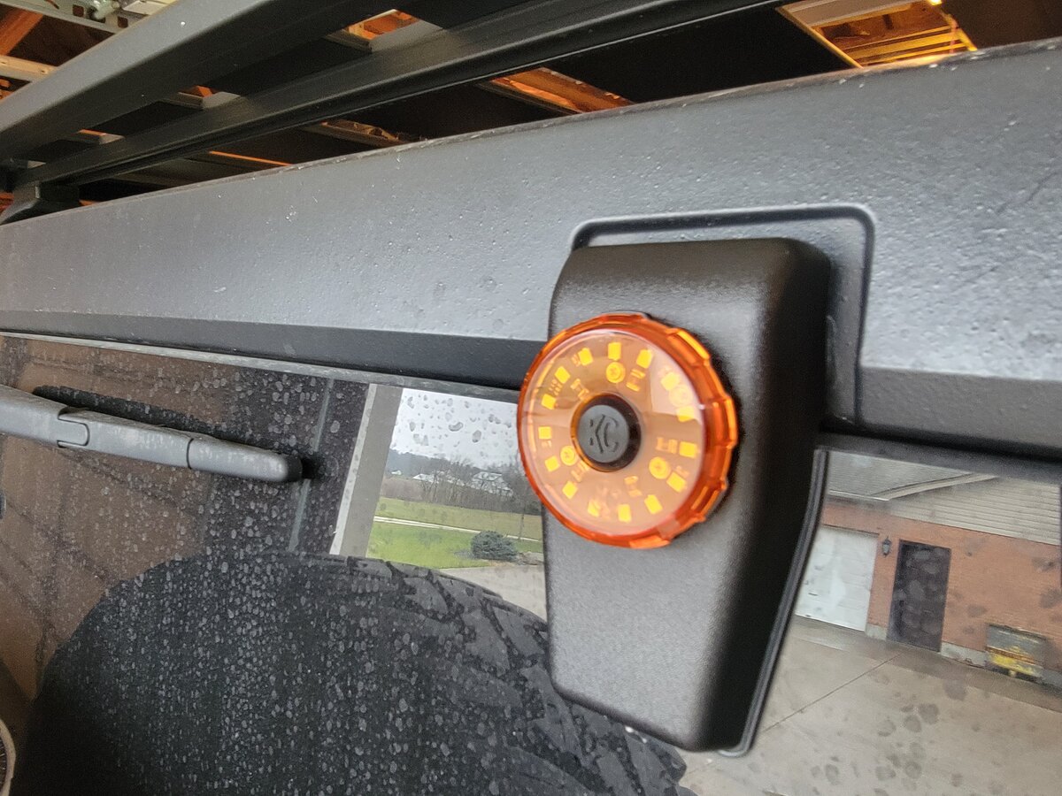 After watching an episode of Trail Recon, i always wanted to add a couple of the amber KC Cyclone Lights to the back of the rig. It was a fairly straight forward install. These look like they will be easily visible in heavy dust or fog.