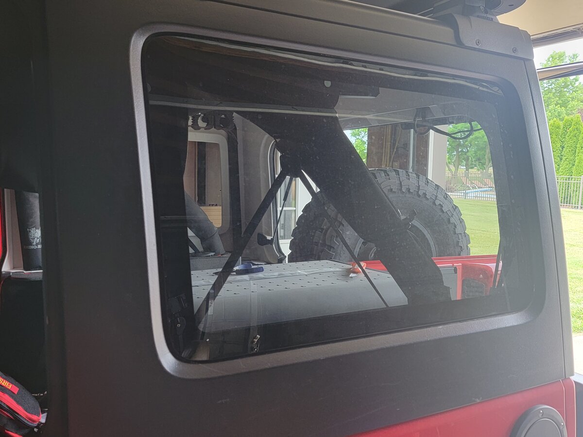 Well, here I am just a few weeks away from heading back to Moab. That has pushed me to finally get these installed! It took a little time, but I was able to remove the back hardtop windows. Cleaned up the surrounding area and installed the metal panels. I can now pack an extra 4 gallons of gas and have quite a bit of light off either side for help setting up camp in the dark, or whatever else may be the need.