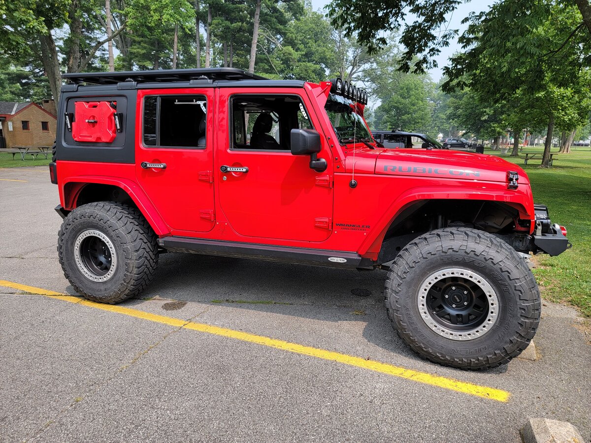 I have 3 Jeeps now. I started with a TJ that was supposed to be for my son. He ended up not wanting it and it has snowballed from there. I made some modifications to it, but really wanted to do some wheeling out west. I figured a 4 door with air conditioning would work a lot better. So the TJ became my daily and I bought this red JKU. While building it, I really tried to fight off building it too big because I wanted it more for overlanding while pulling a small trailer. I just about have it where I want it. Only a few more tweaks. But the inner child in me always wanted something bigger.