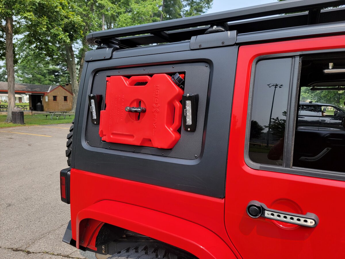 Two years ago I was lucky enough to make the trip to Moab, UT. While there, we ran the Elephant Hill trail (still my favorite trail to this date). However, I also was extremely close on running out of gas. Foolishly, we were by ourselves and didn't have any spare. It wasn't long after that I decided to buy the Rebel Off Road Blackout Window Storage Ver. 2.0 w/ Rigid Lights Upgrade.