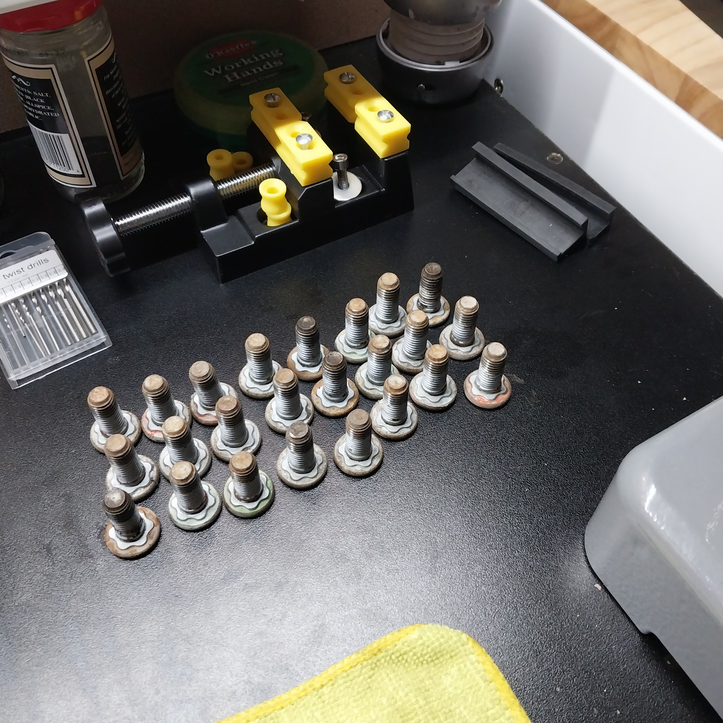 Tried the tool-less retaining fasteners for the top. Without the dogpoint they were more difficult to get threaded to the nut. Maybe after a few times I'll find a better process.