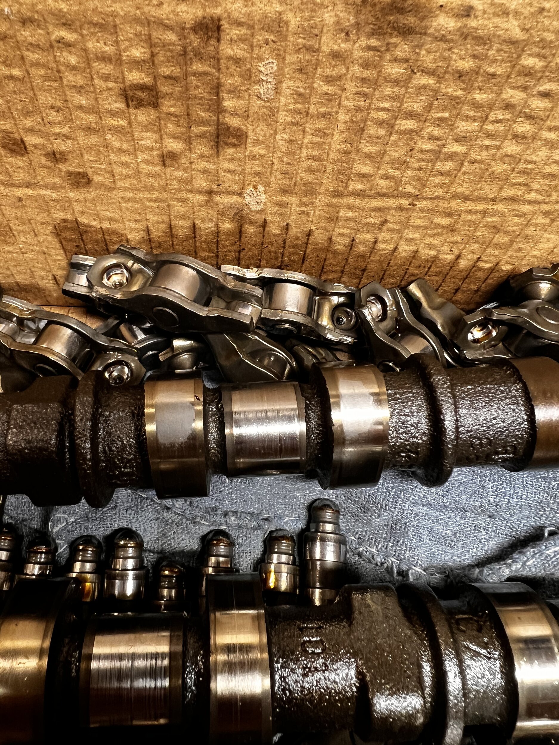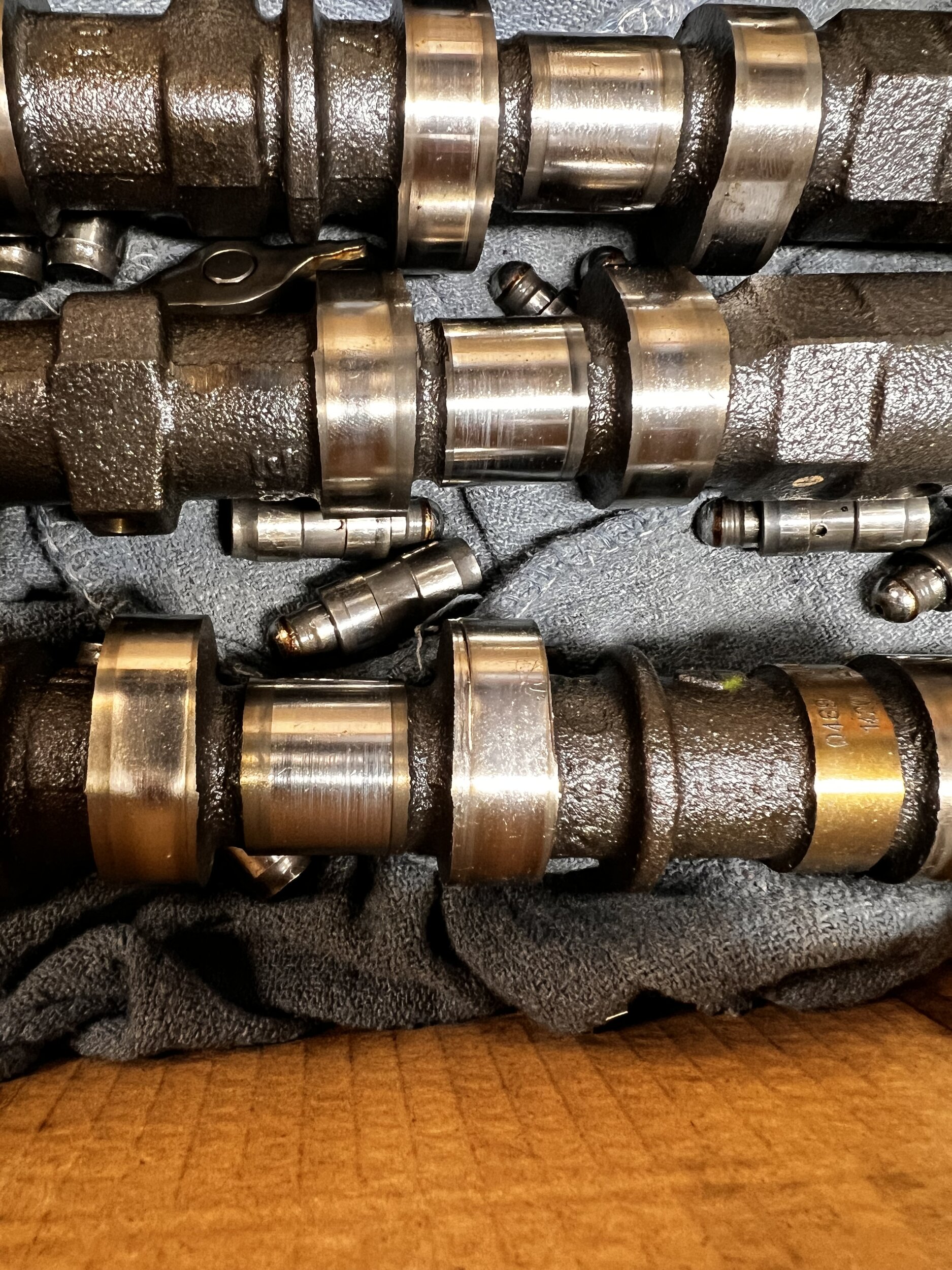 Picked up the wife’s JKU today, service contract is being billed $4,950. Here are few pictures of the camshafts, and one of the rockers. In the one you can see the grove on the side, on the other you can see the wear marks. On the rocker the roller isn’t visible, I think this is worse one, there were a few others that were loose. The new oil cooler is a Dorman 😁View attachment 127703