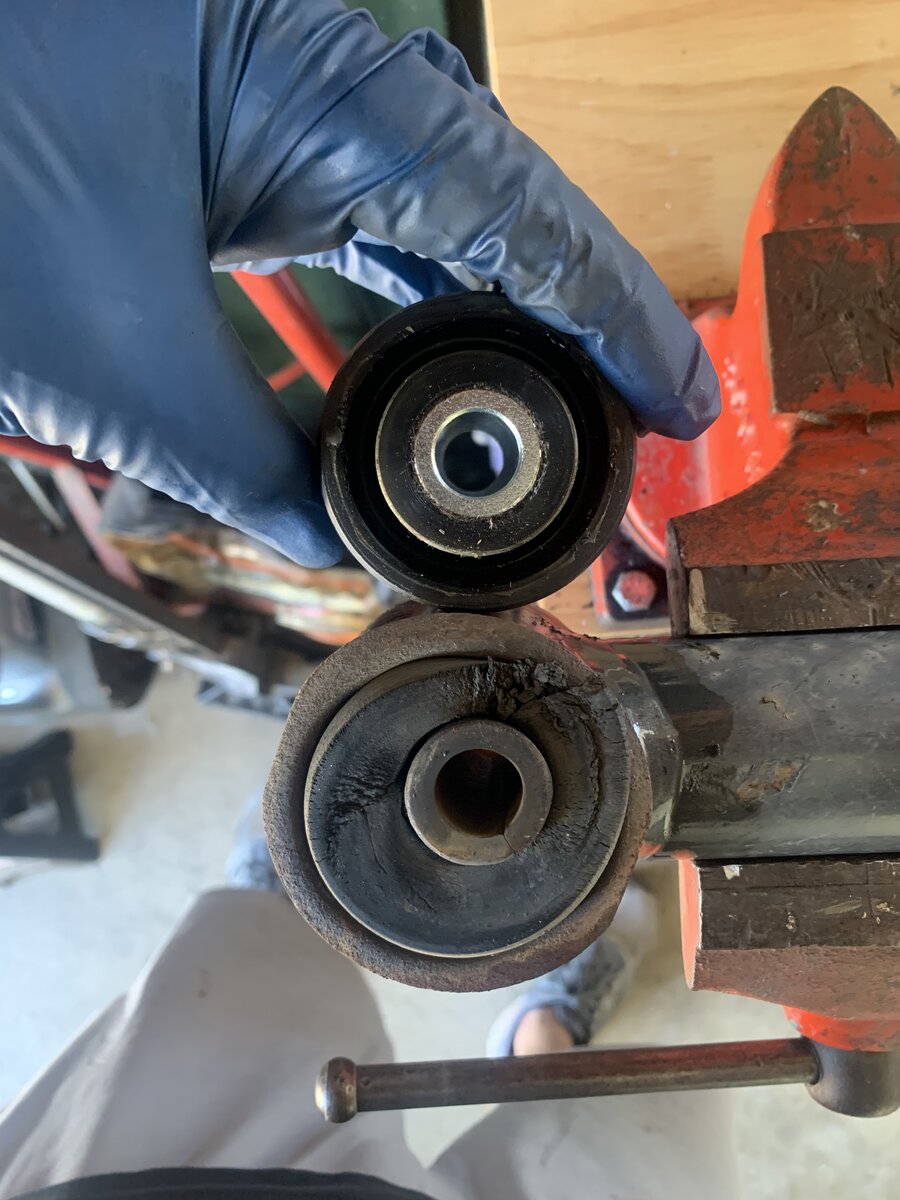 Rear Lower Control Arm Bushings. Fronts were just as bad but got those done a bit ago. Finally had the parts to finish the job.