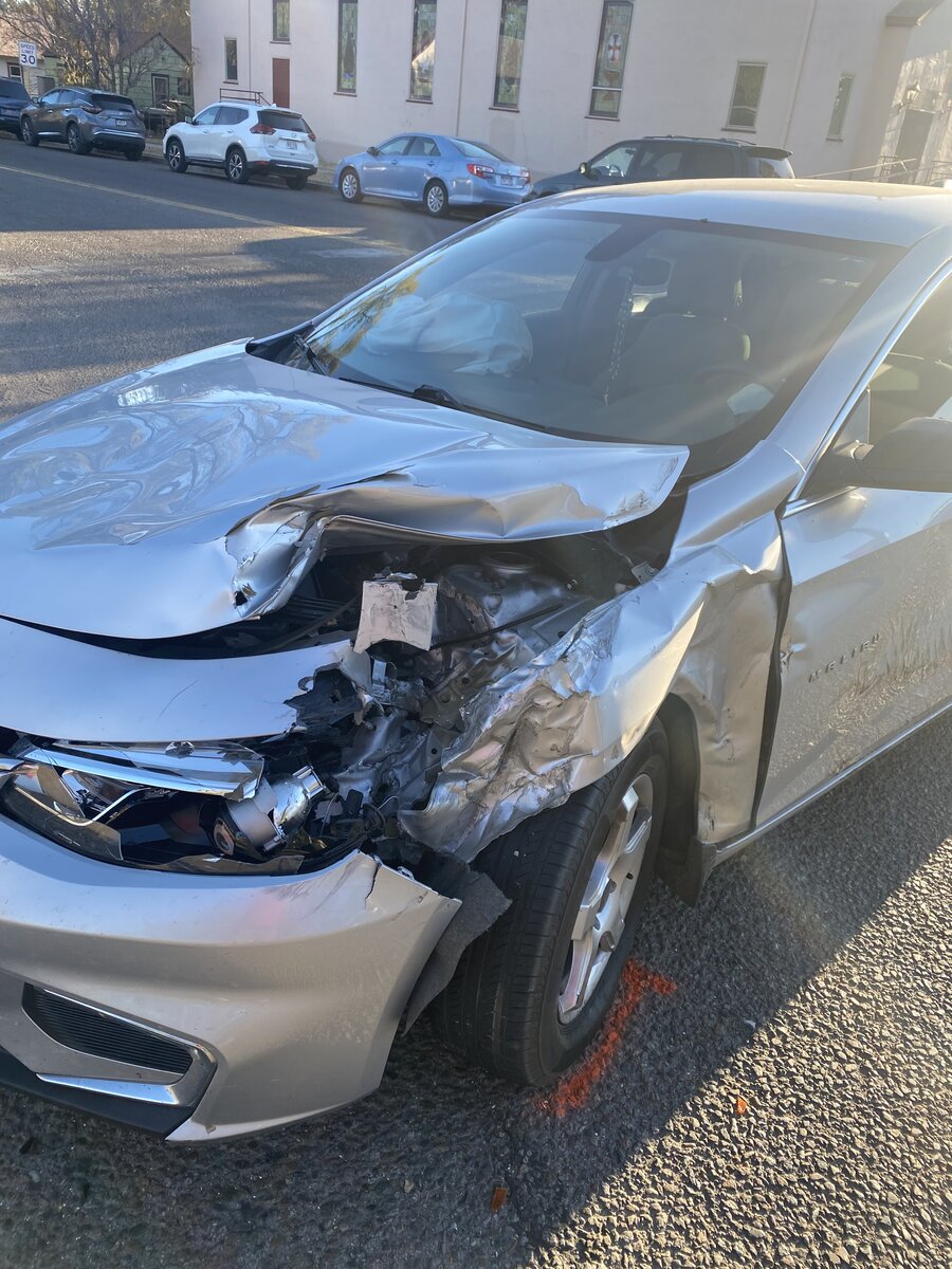 About an hour from her hospital, I missed a stop sign. Sign cluster on the NE corner. At 0800. With the sun right behind the cluster. The young lady I hit and the cop both said that sign is often missed, so it's known to be a problem intersection. I've had this Jeep 2.5 months. Put plates on it 2 weeks ago. She still had temp tags on her malibu.