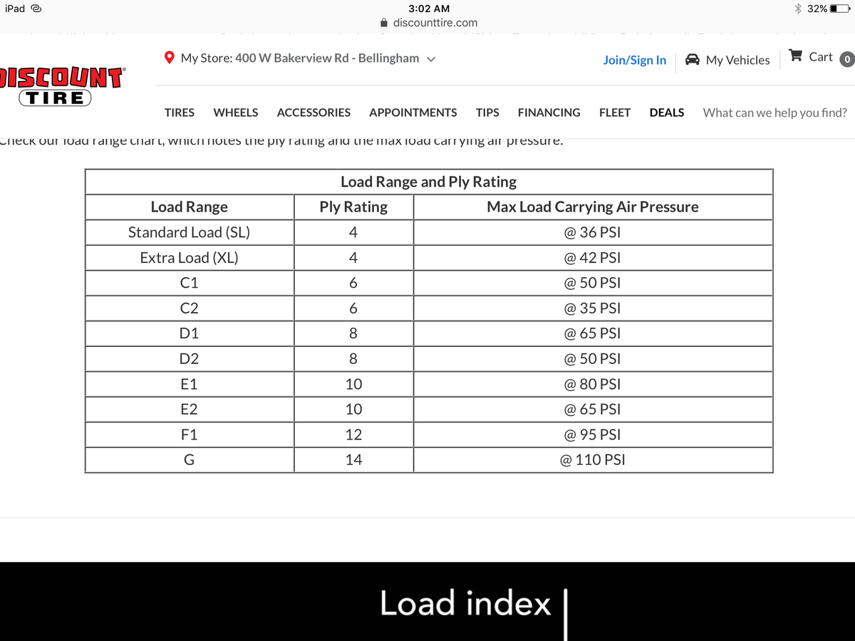recommended for any given tire rating . This is just a general chart from Discount Tire